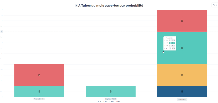Le drill dans l’histogramme regroupe quant à lui plusieurs niveaux d’informations sur un même rapport, offrant ainsi une vue détaillée de vos données et réduisant par conséquent le nombre de clics nécessaires pour accéder aux données souhaitées.